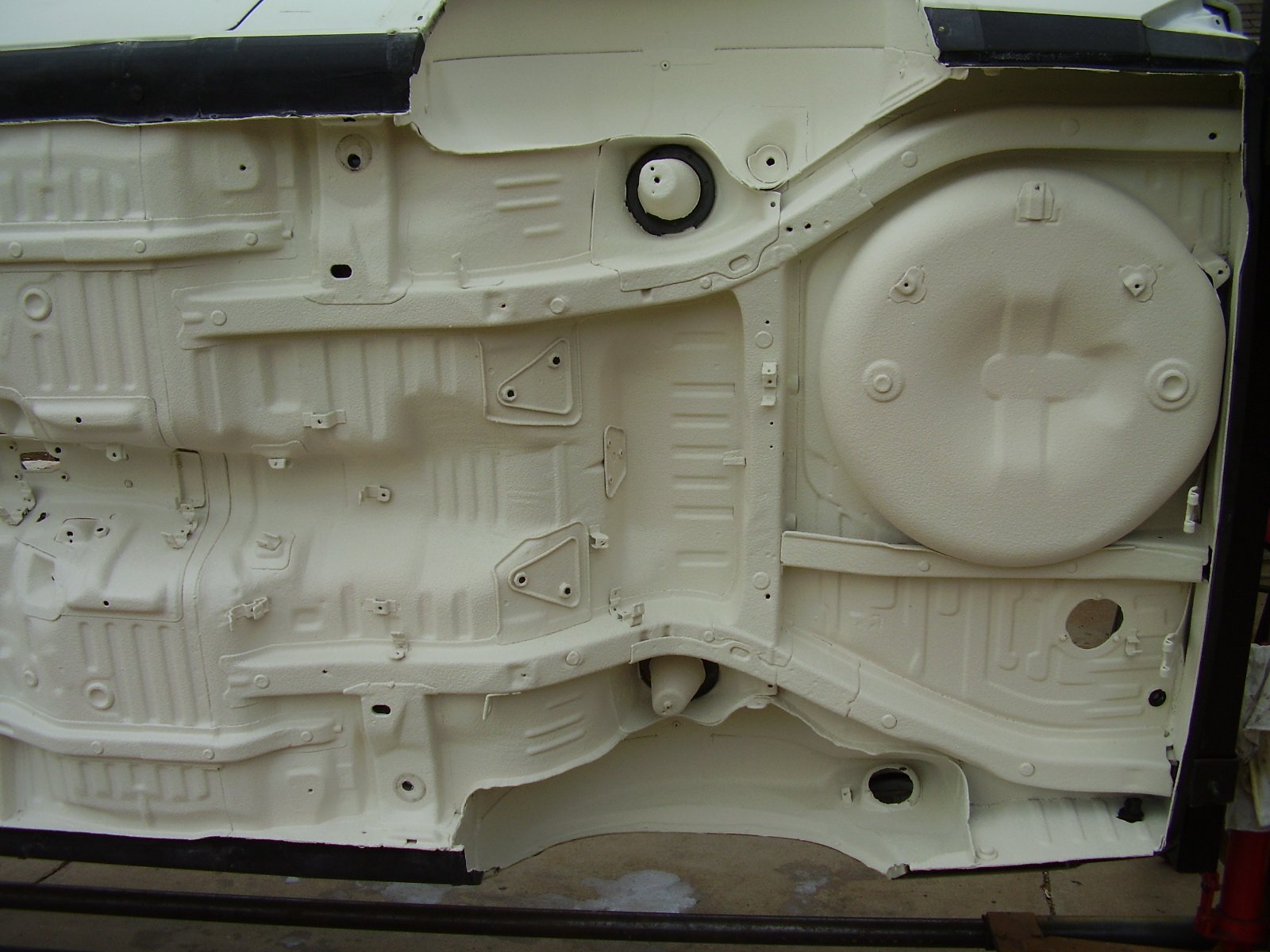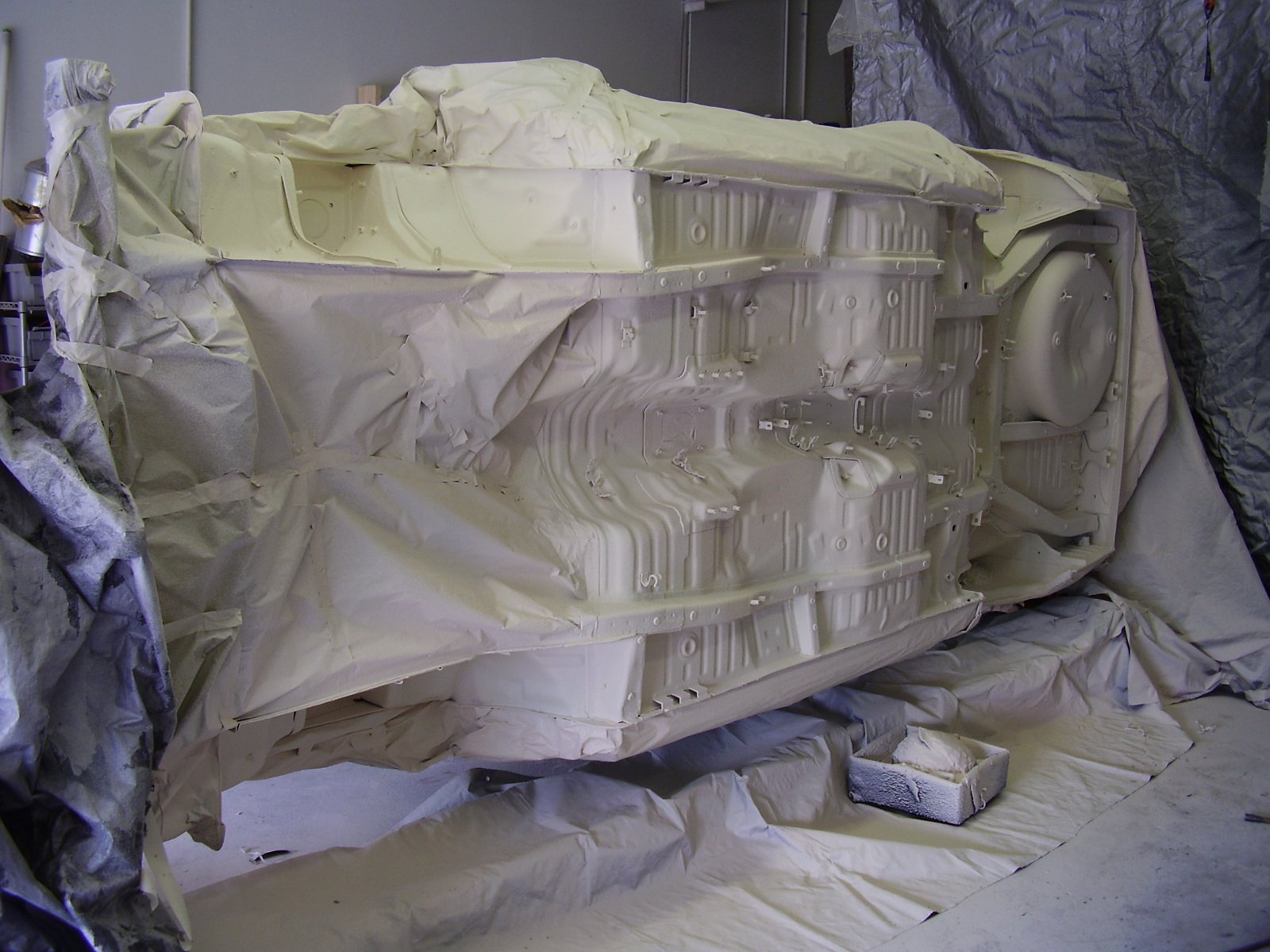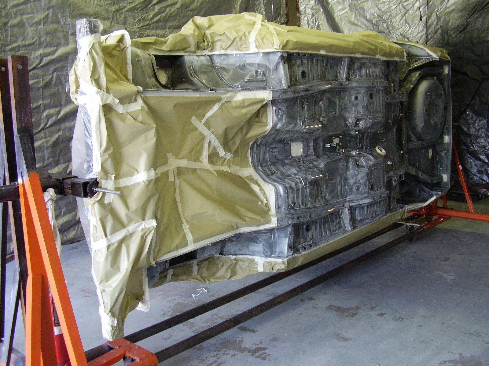 On Tuesday, May 13, 2008, the bottom of the car was sprayed with the Line-X material.