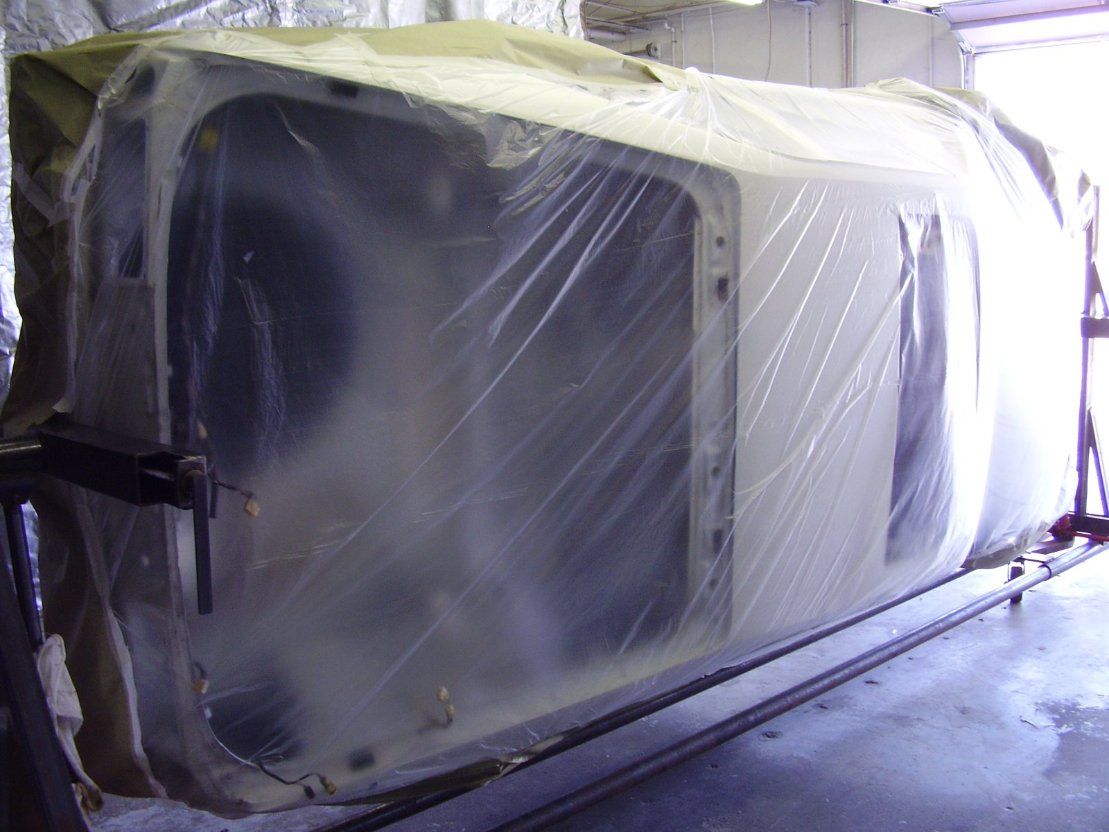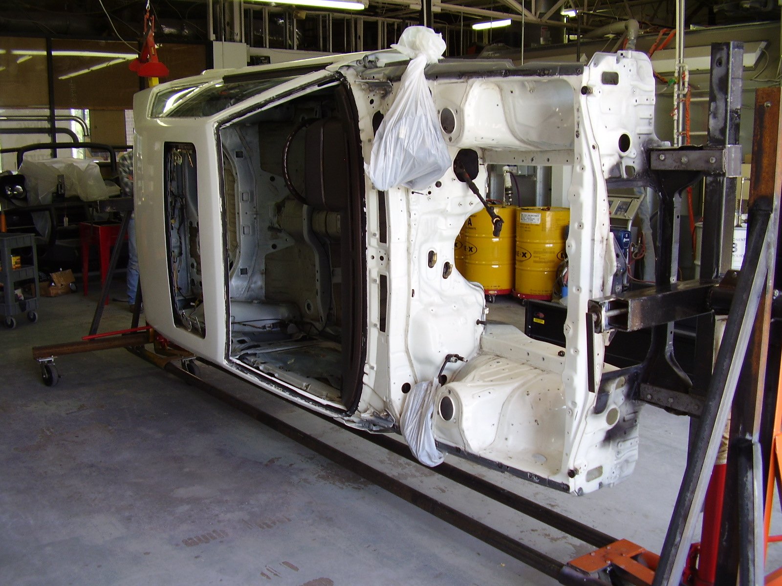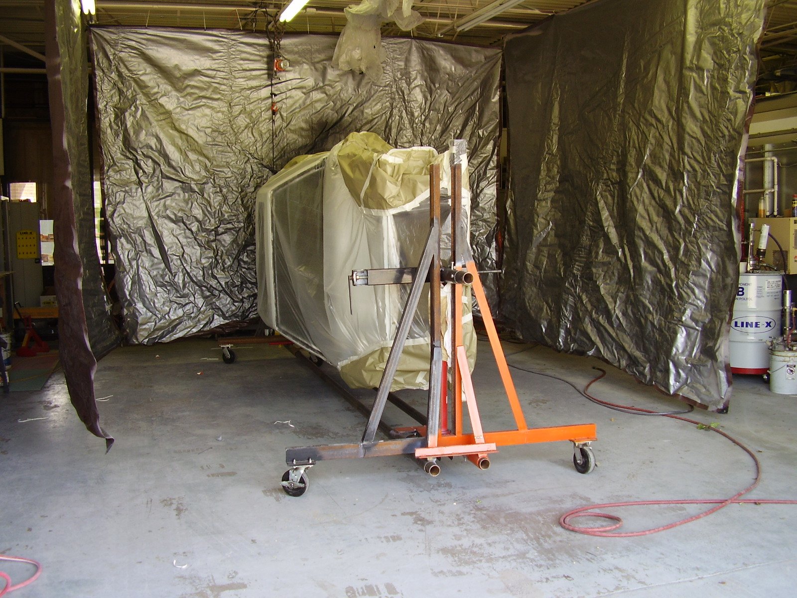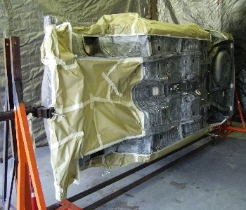 Later in the day, I went back and found that the car had been prepared and ready to be sprayed with the Line-X material.