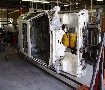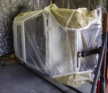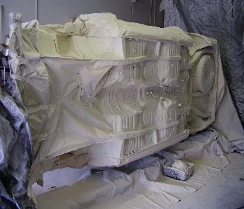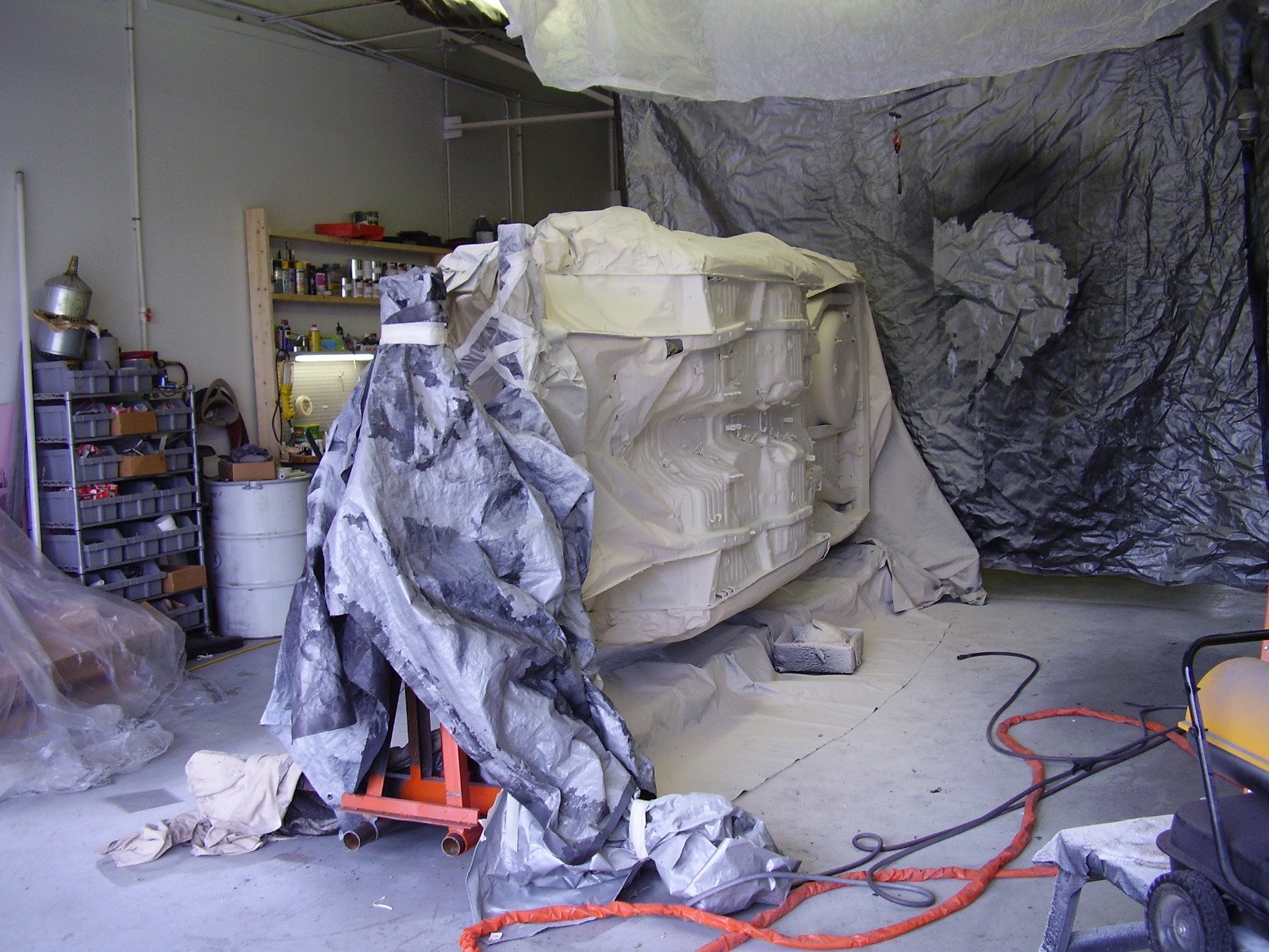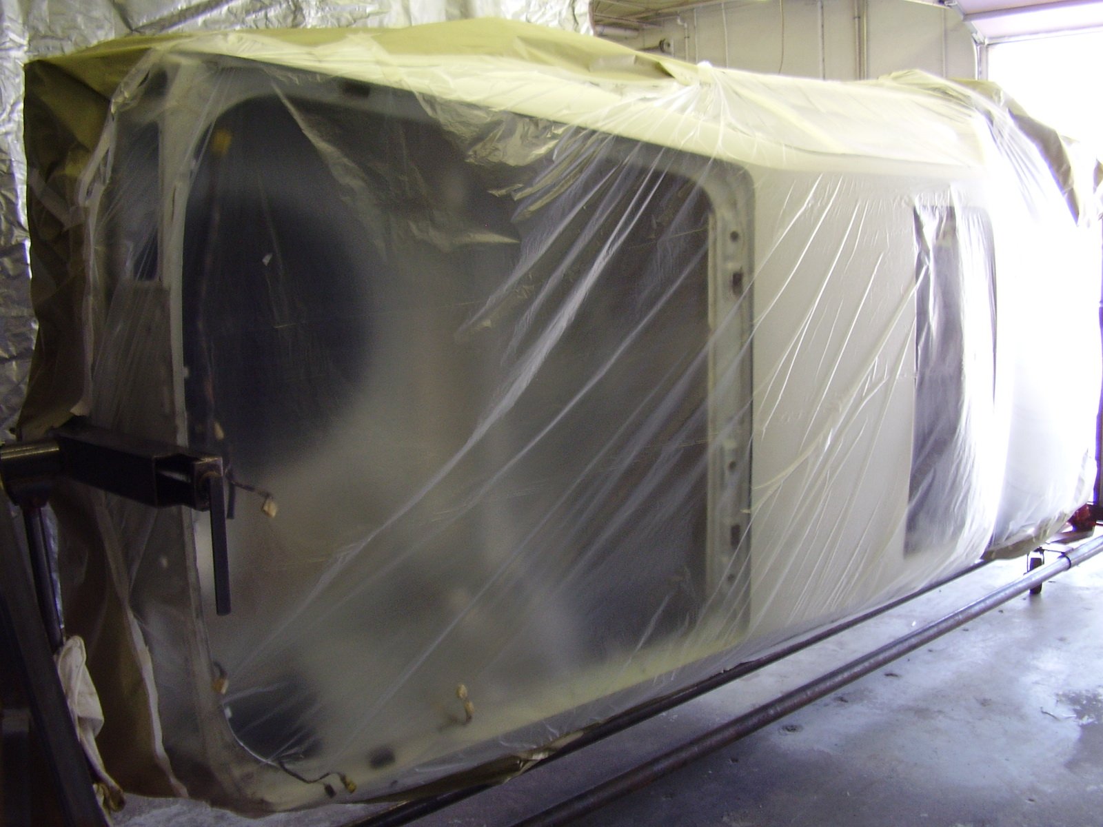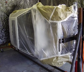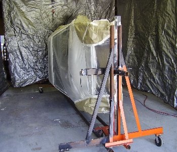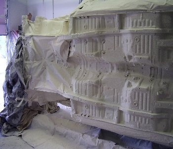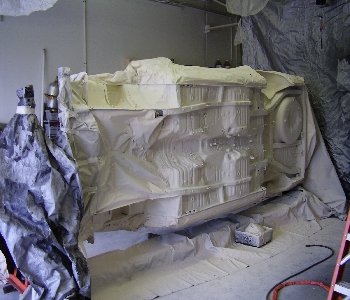 Later in the day, I went back and found that the car had been prepared and ready to be sprayed with the Line-X material.