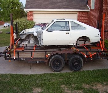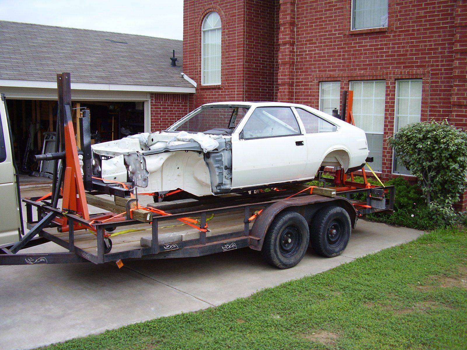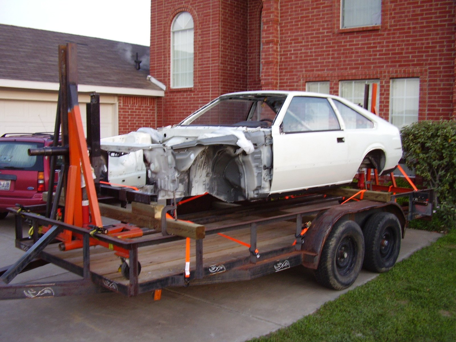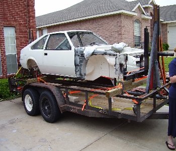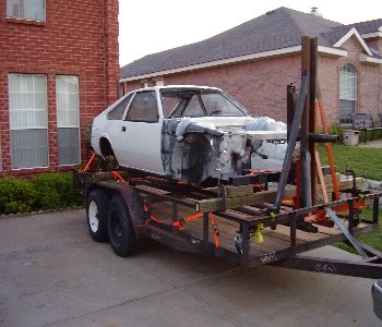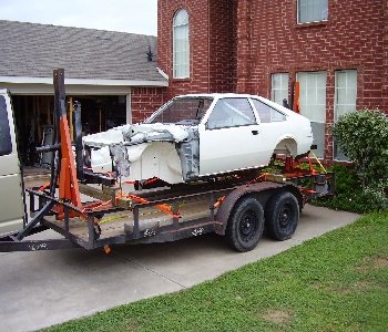 With help from my family, we were able to load the Hatchback on the trailer for transport to Trucks N Stuff in Plano, TX on May 12, 2008. With help from the staff, we unloaded the car into their shop.