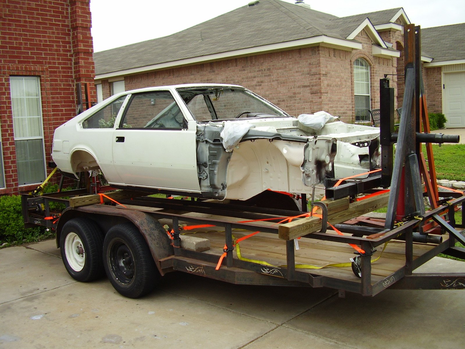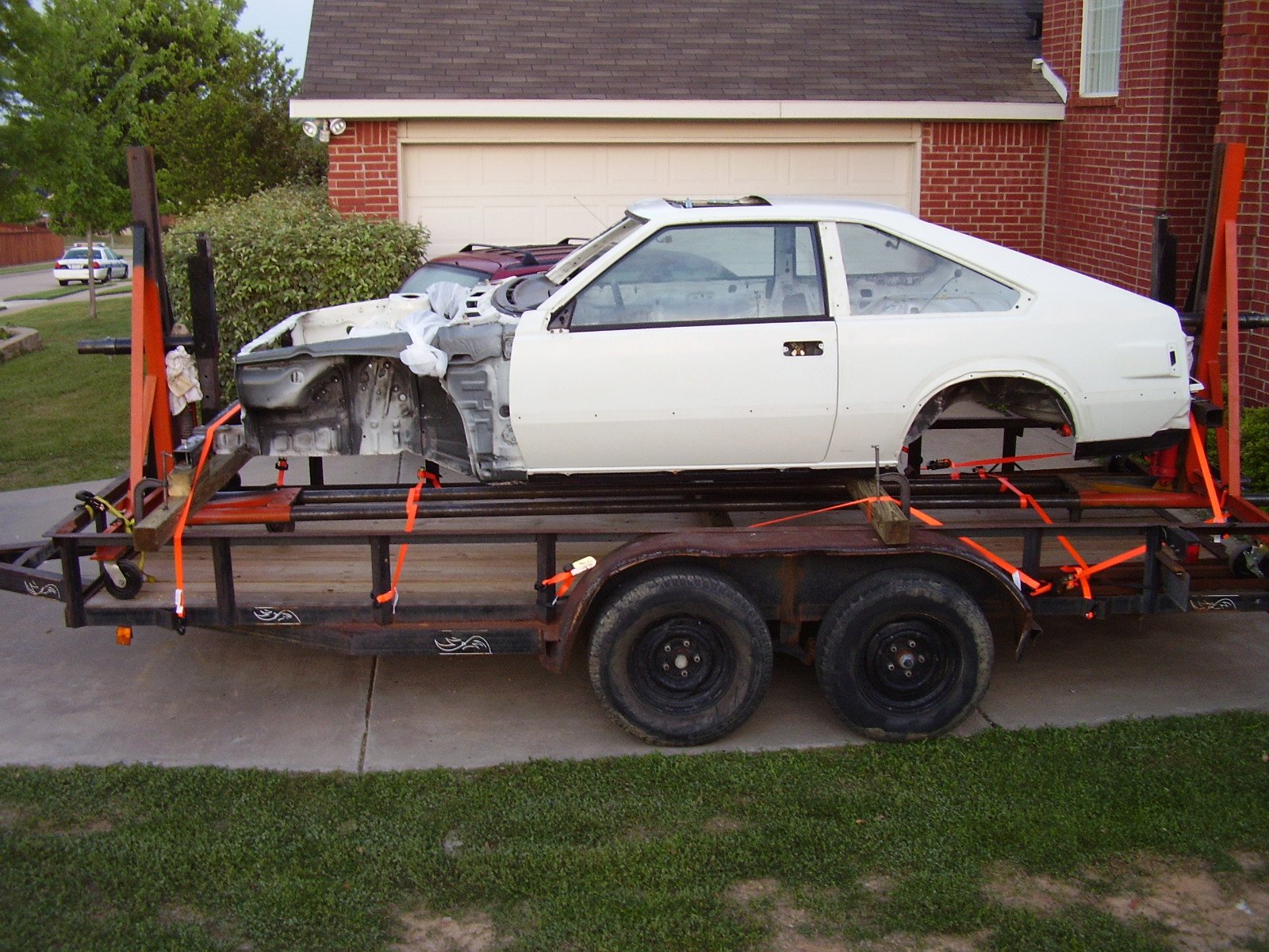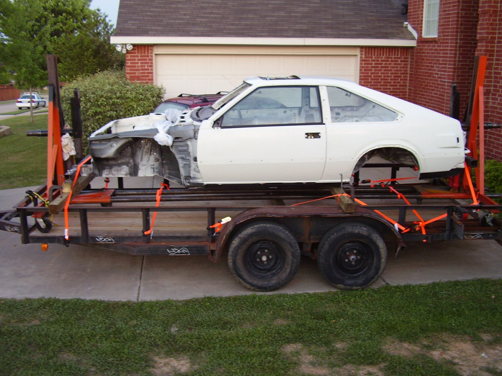 With help from my family, we were able to load the Hatchback on the trailer for transport to Trucks N Stuff in Plano, TX on May 12, 2008. With help from the staff, we unloaded the car into their shop.